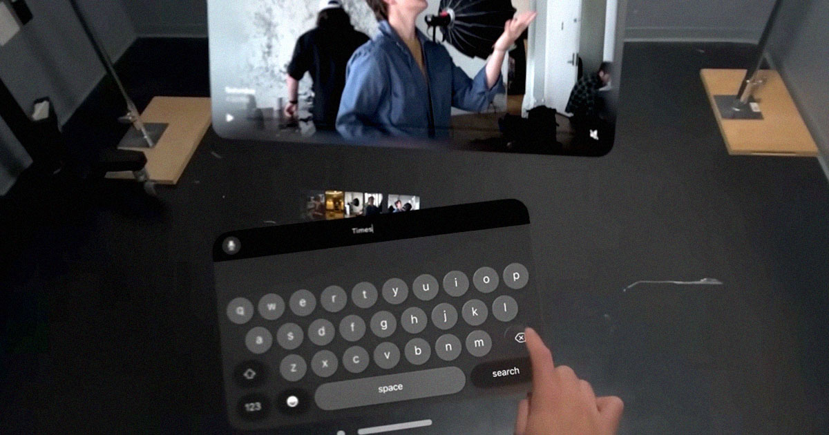Apple designed it in such a way that the user has to either literally look at individual letters and confirm each press by pinching their index finger to their thumb on one hand or prod a translucent keyboard in mid-air with both of their index fingers.