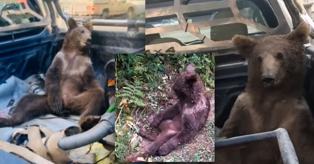 Footage shows the bear, dubbed Balkiz, looking dazed and confused as it sits upright on the back of a pickup truck, presumably questioning its life choices.