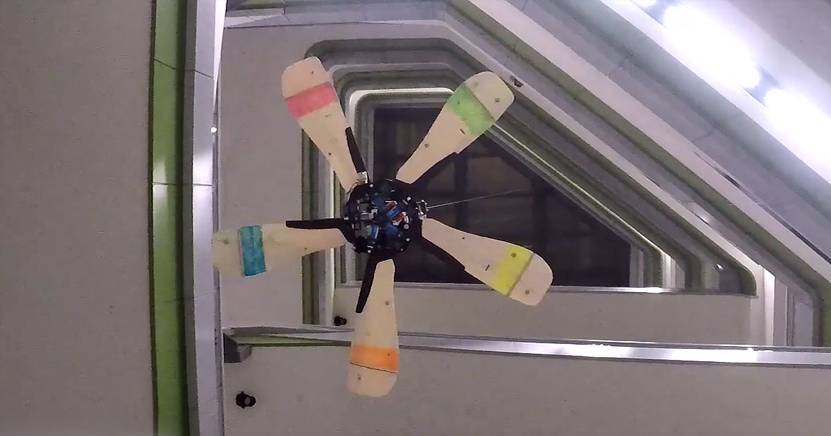 They then pulled a Voltron, combining five of the mini-drones into one bigger, ceiling fan-shaped drone that’s even easier to control.