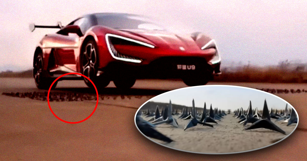 As a recent promotional video demonstrates, the Yangwang U9 can leap over small obstacles — including large potholes and even road spikes deployed in a police roadblock — thanks to an active suspension setup.