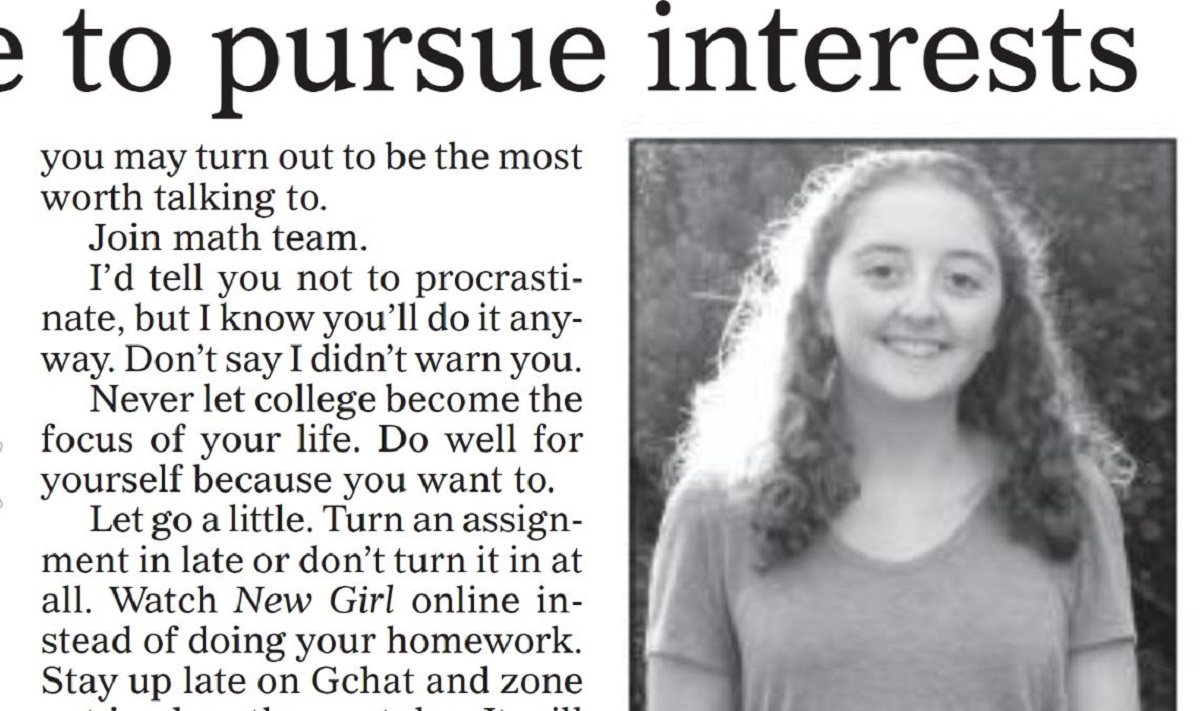 Fascinatingly, the column appears to be legit. It was printed in 2012, in Newton North High School’s graduation special, and bears both the byline and an old photo of Ellison.