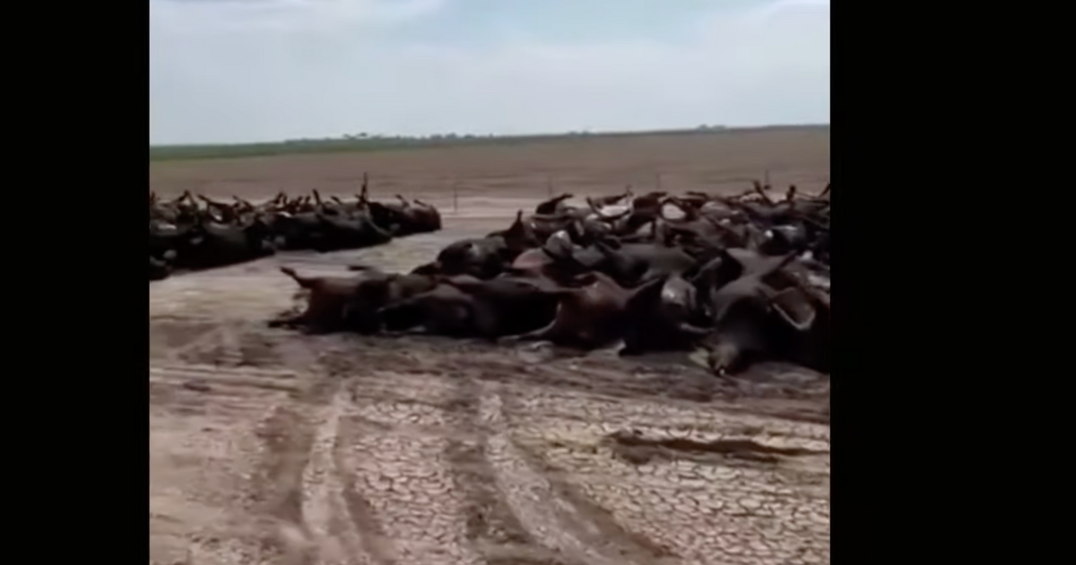A widely-shared video with more than 35,000 views purports to show 10,000 dead cattle in a barren, waterless feedlot without shade or shelter. Their corpses are lined up in the same field where they waited to be shipped to slaughter houses before dying. Although Futurism could not independently confirm the deaths, many in the comments took the minute-long clip very seriously.