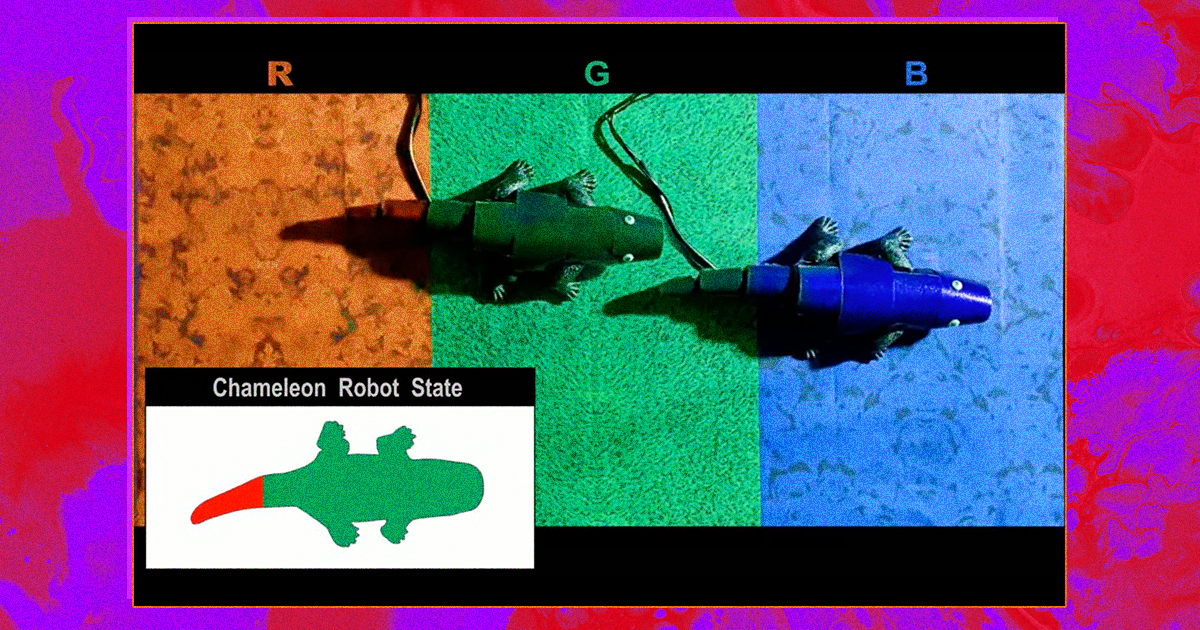 The flexible, color-mimicking technology is durable and sensitive enough to help a soft robot blend into its surroundings, much like a real-world chameleon, according to research published in the journal Nature Communications on Tuesday. To prove that the system works, the researchers published a video of the chameleon-like bot, complete with cute googly eyes, that changes color from red to blue to green as it waddles across different monochrome surfaces.