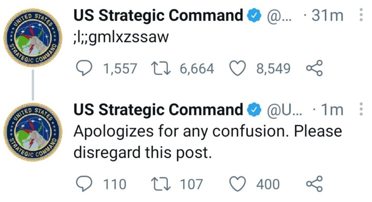 Not that there’s anything wrong with occasionally firing up Twitter and broadcasting “;l;;gmlxzssaw” to the world, of course. But Stratcom helps oversee and manage the country’s nuclear arsenal. So any glitch or potential hack, no matter how small, justifies a raised eyebrow. Thankfully, it turns out that nothing sinister happened and the since-deleted tweet stemmed from regular old nonsense — though the incident reveals a stunning lack of judgment and security within a high-profile military agency.