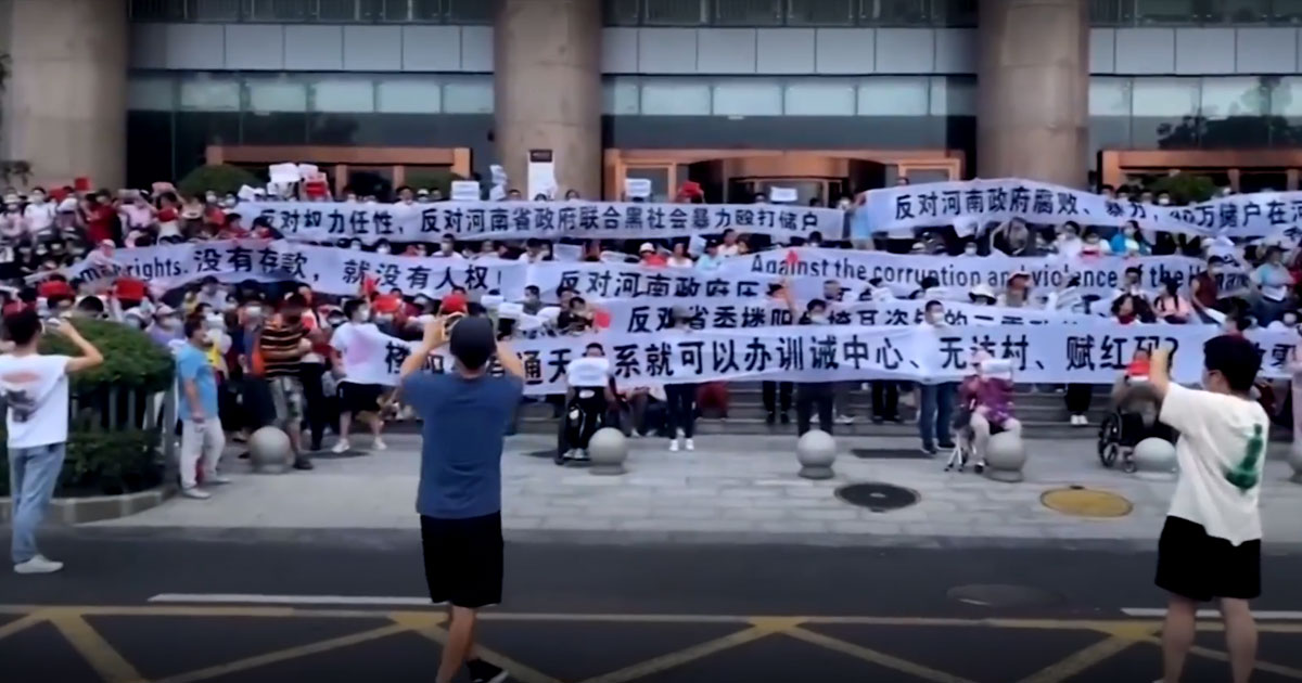 In a rare mass demonstration, roughly 1,000 protestors gathered at the People’s Bank of China’s Zhengzhou branch on Sunday, looking to reclaim government-frozen personal funds — only to face brutality at the hands of violent security forces, and leave without their money.