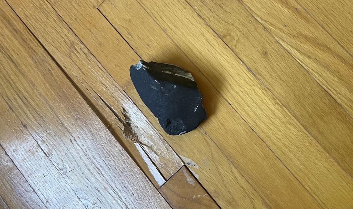 Thankfully, no one was hurt in the incident. That’s lucky, considering that the rock fully smashed through the roof and landed on the New Jersey family’s hardwood floor — but not before pingponging chaotically around the room.
