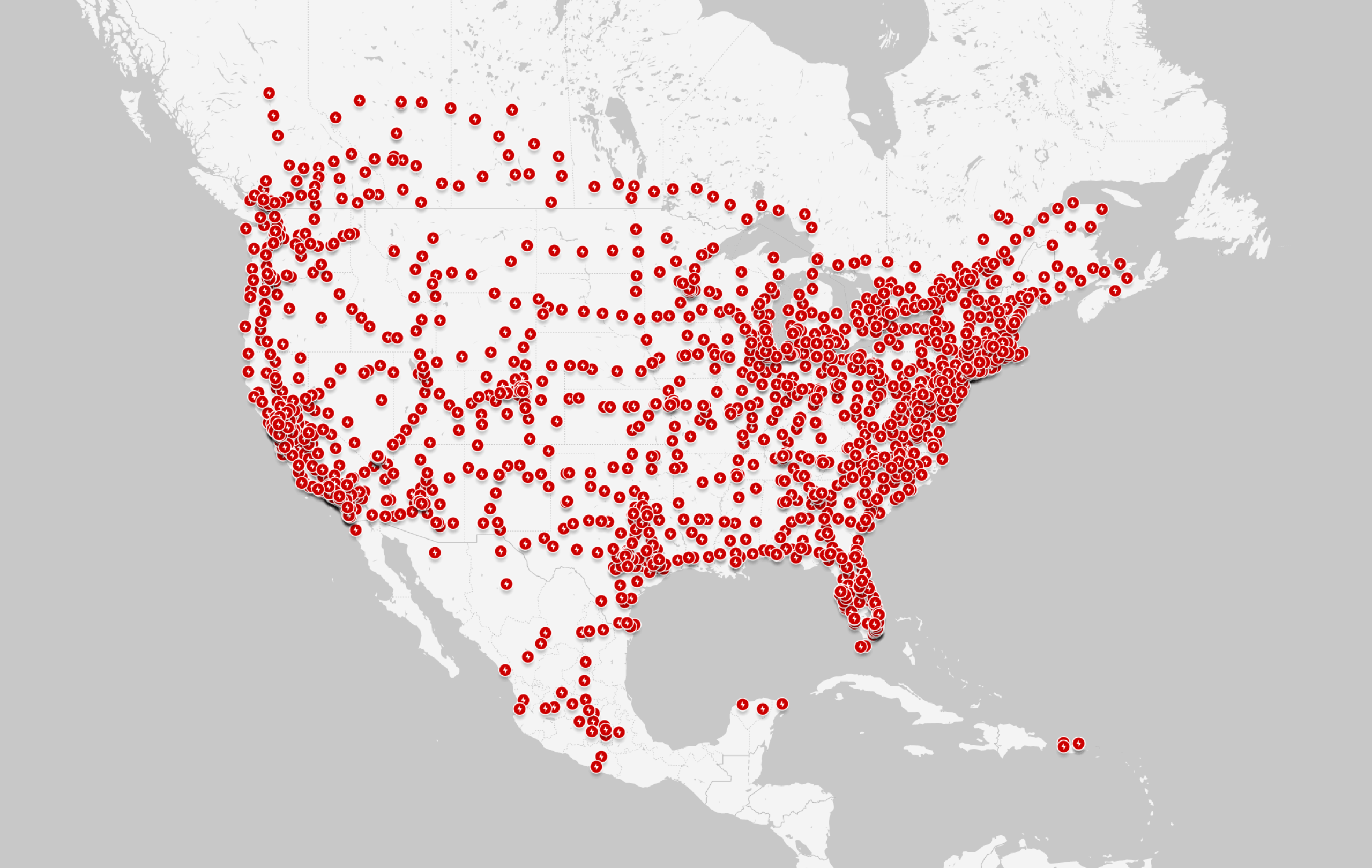 Tesla’s official map of its charging network shows that its Superchargers are noticeably absent in Canada’s northern provinces.