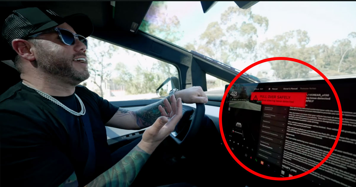 According to a message flashing on the screen, the Cybertruck detected a “critical steering issue.”