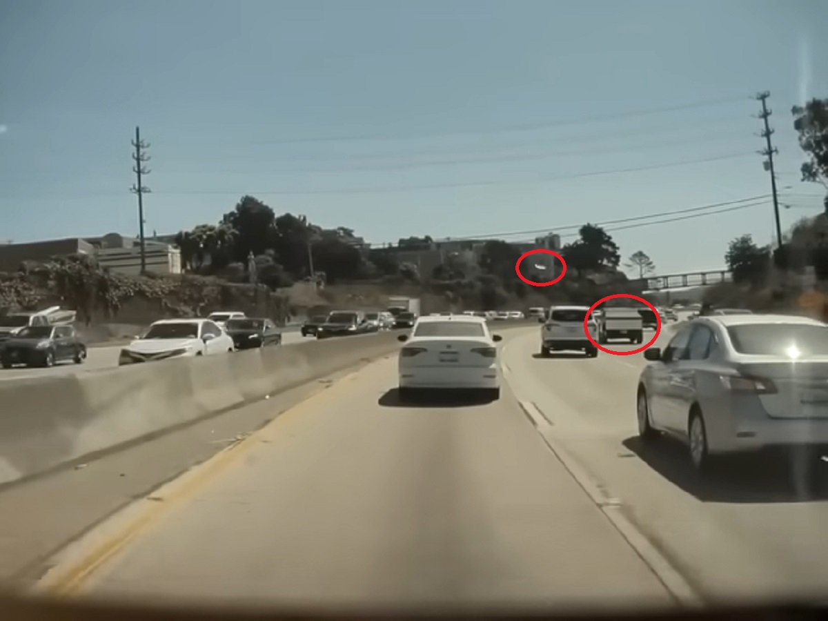 The video in question shows a Tesla Cybertruck prototype moseying down what appears to be a San Francisco-area freeway when out of nowhere, the electric pickup’s wheel cover shoots almost vertically into the air.