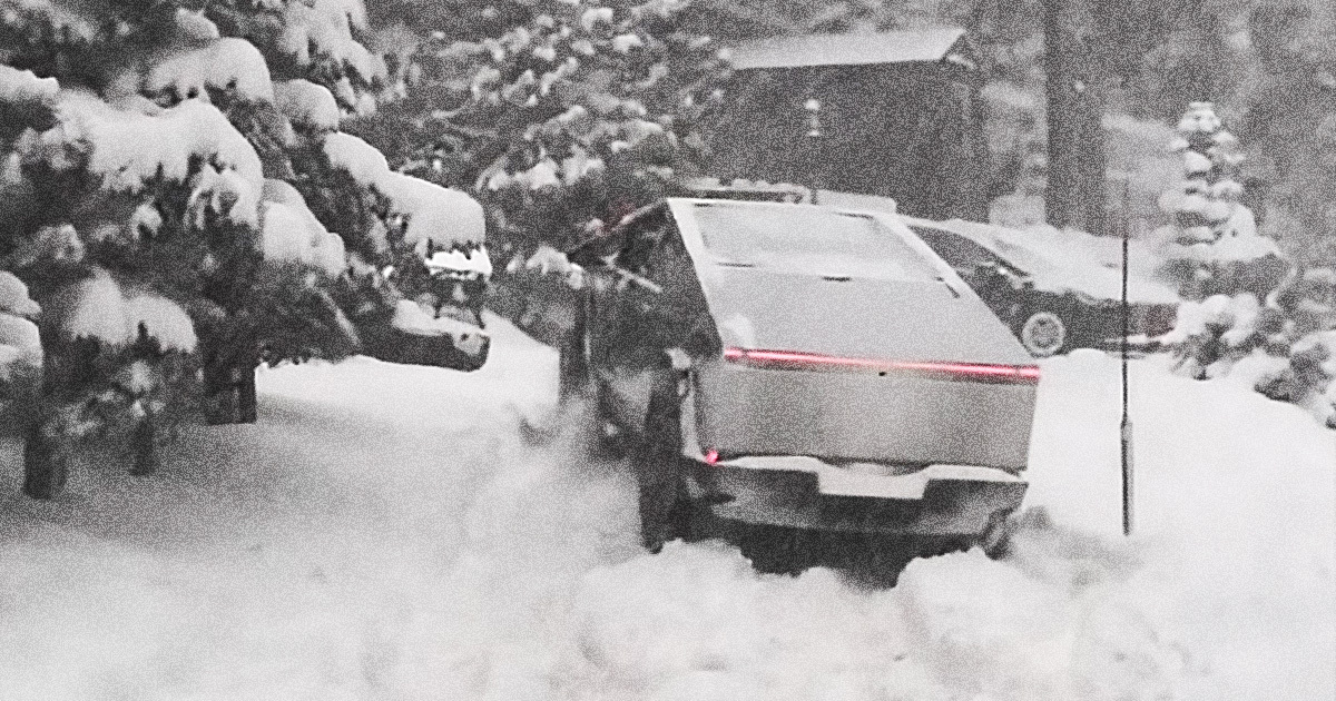 An Instagram user posted a video of a Cybertruck slipping and getting stuck in about four inches of snow in an unspecified location. A man in the video quips, referring to Tesla CEO Elon Musk, at the Cybertruck driver, “I’ll call Elon. He’ll get you out.”