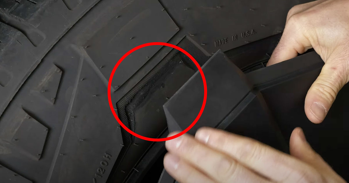 When weight is applied to the tires, they bulge outward, causing the aero wheel cover’s sharp edges to make contact with the tire.