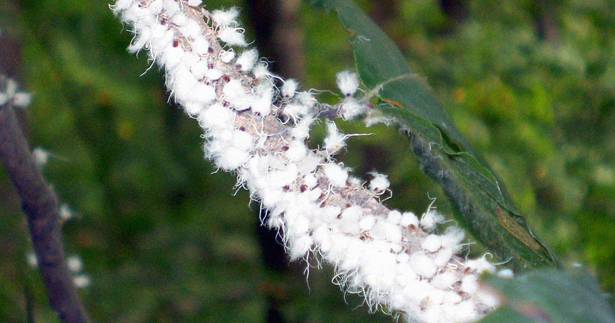 The partying fluffballs are indeed a species of woolly aphid that feed off the sap of beech trees and typically form colonies on a tree’s branches or under its leaves. They’re not believed to be harmful to their hosts, but they do leave behind a black, soot-like fungi on a tree’s branches, and also excrete honeydew.