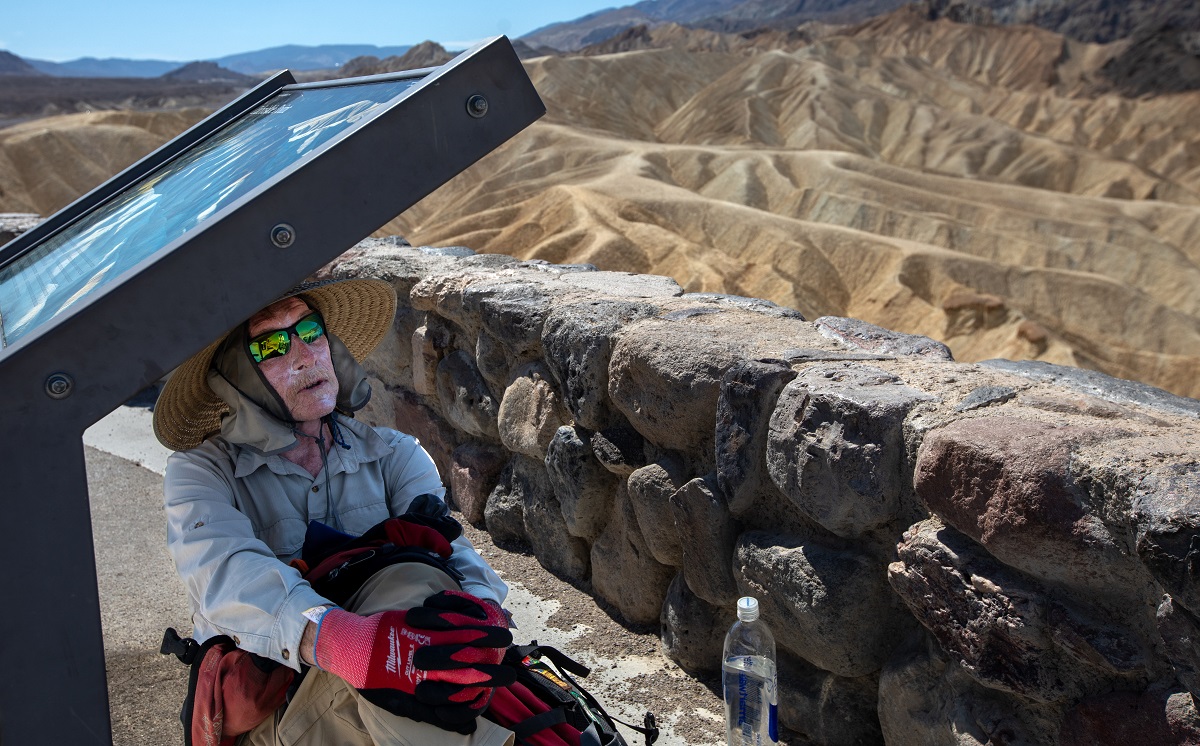“It’s a dry heat,” the hiker said while sitting atop the desert’s Zabriskie Point summit. “Everything is hot here.”