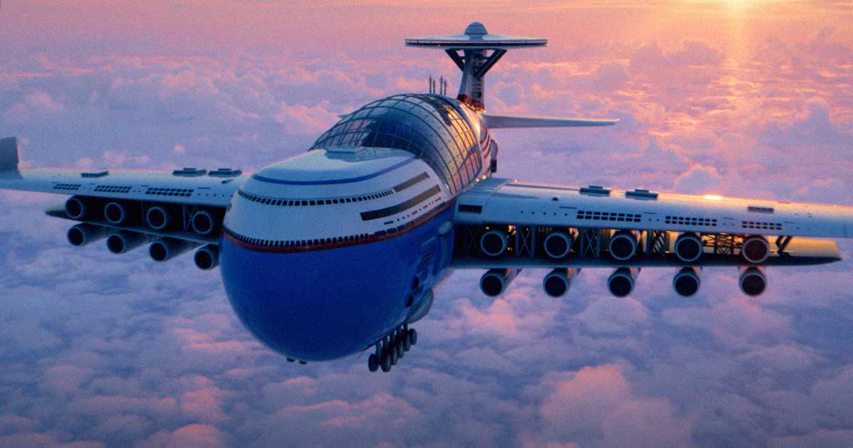 It’s definitely not a bird, but it is sort of a plane. Specifically, it’s a non-existent but admittedly very cool concept called the Sky Cruise, a fantastical nuclear-powered sky hotel.