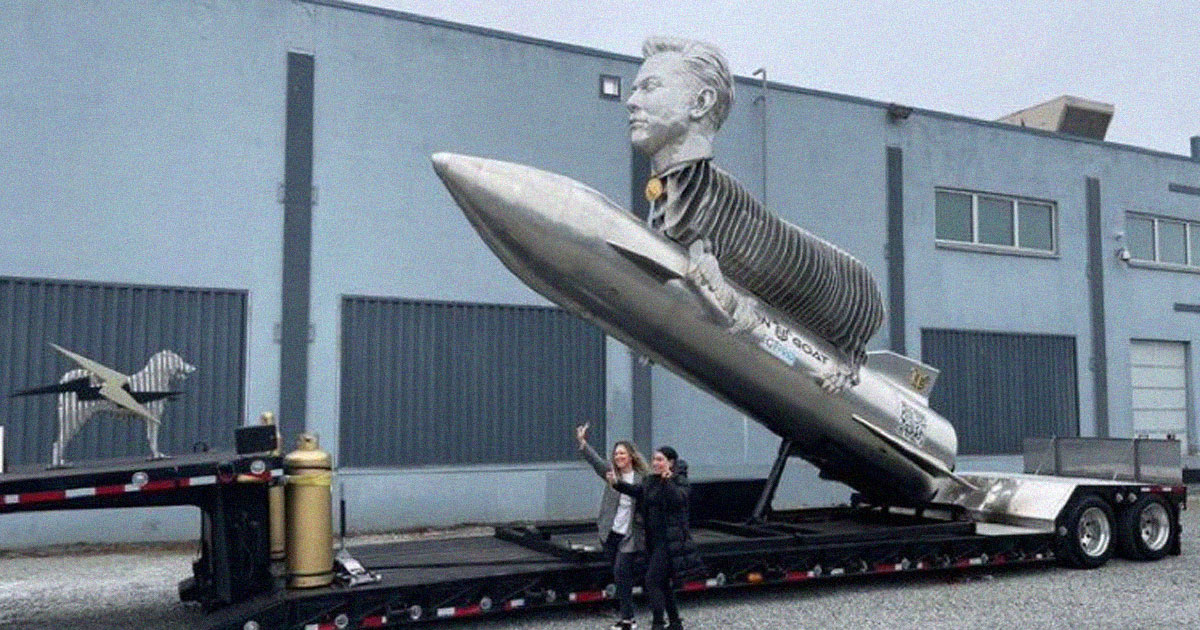 A bunch of crypto-pilled Elon Musk fans spent $600,000 to build a giant statue that features the new Twitter czar’s head on a goat’s body, riding a rocket — and their coin crashed after they took the grotesque work of “art” public.