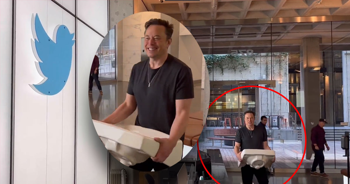 Tesla CEO Elon Musk has shared a video of himself carrying what appears to be a ceramic bathroom sink into the lobby of Twitter HQ in San Francisco.