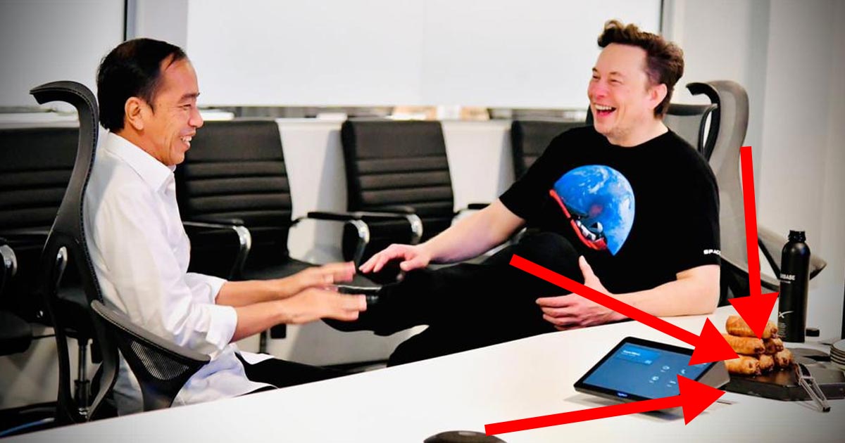 But that’s besides the point. What really stole the show was the sleek piece of equipment elegantly displaying a small stack of unidentifiable pastries on the table next to Musk and Widodo.