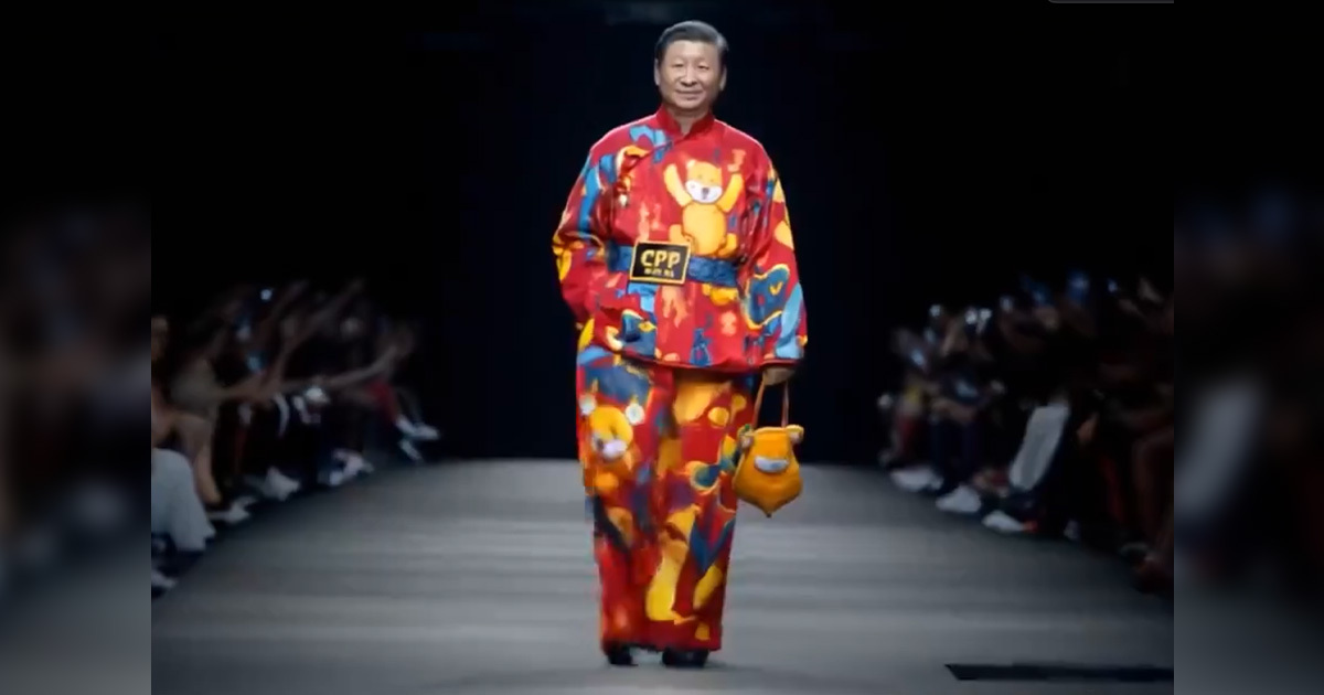 But for the Chinese leader, the video goes for the jugular. Xi Jinping is dressed in a pants-like robe emblazoned with what looks like Winnie-the-Pooh and the acronym “CCP,” standing for the ruling Chinese Communist Party — a serious disparagement in the authoritarian China, where dissidents have for years used the lovable children’s character to poke fun at Jinping.