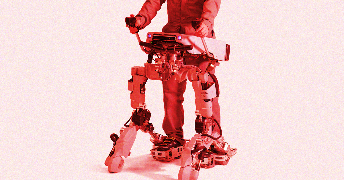 The suit, dubbed the Koma 1.5, is designed to allow its wearer to lift heavy items while also rolling across relatively smooth terrain, like a factory or warehouse floor — and to do it in style, seemingly.