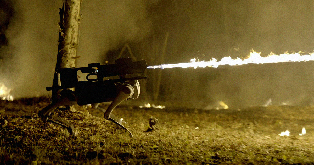 A company called Throwflame is selling a robot dog that has a flamethrower strapped to its back, which can shoot terrifying, 30-foot streams of fire.