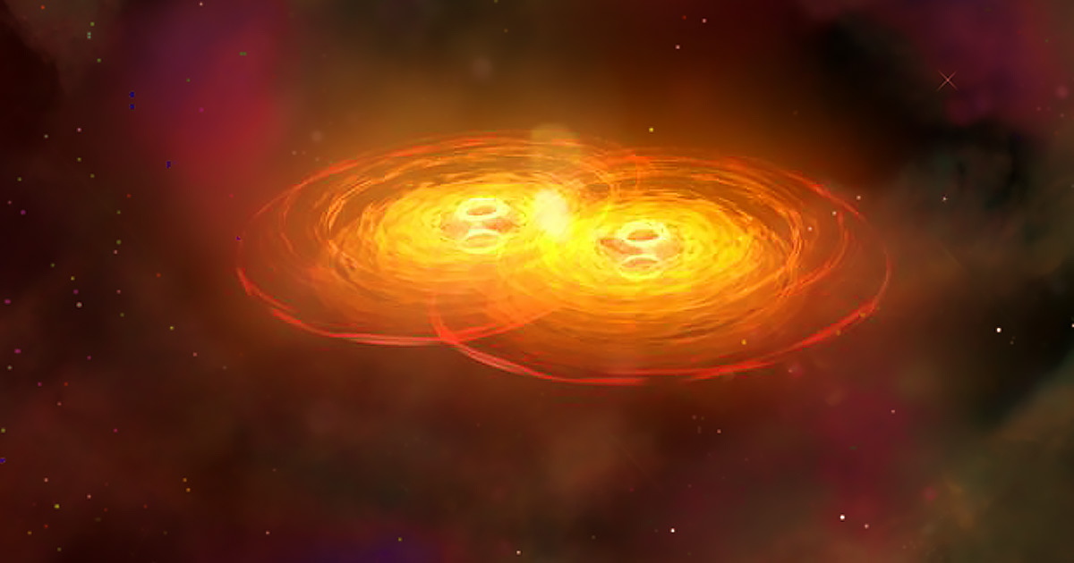 Until now, the flair had scientists stumped for answers — but scientists are now suggesting, according to Scientific American, that it could be a sign of a phenomenon first proposed in 2017: two massive black holes, wrapping around each other as they collide.