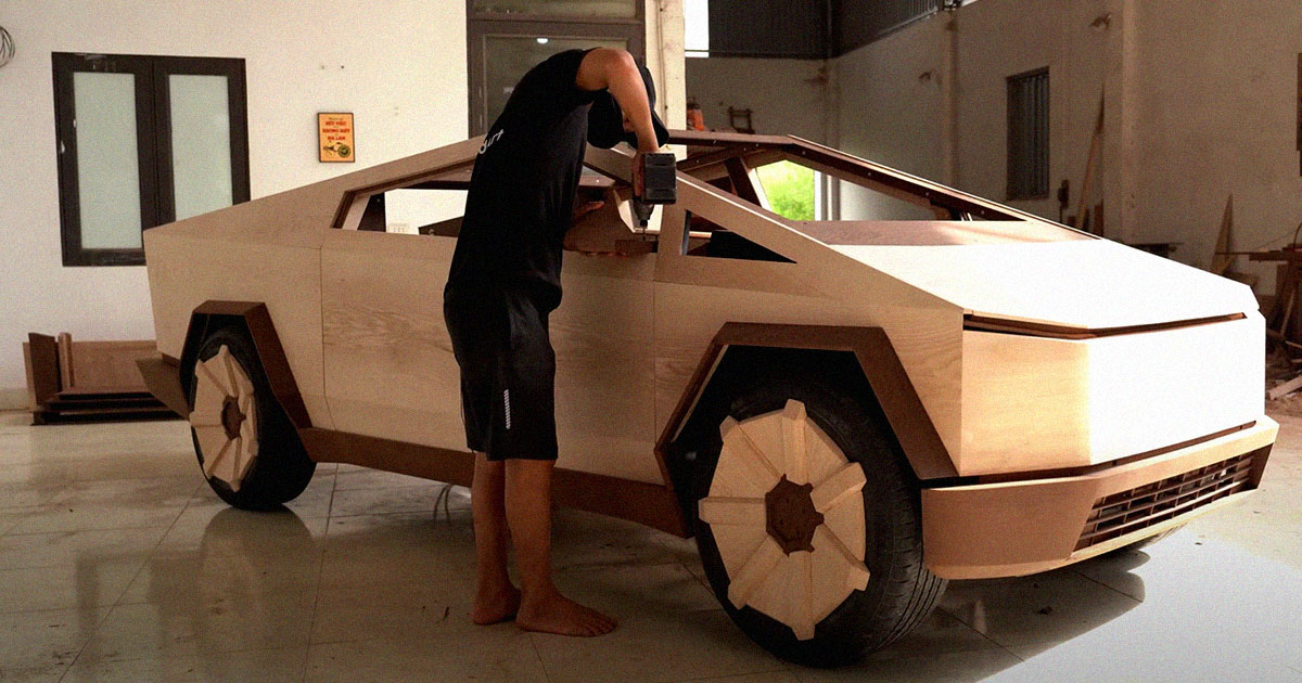 Clever engineers have built an entire (almost) full-scale model of a Tesla Cybertruck — out of wood.
