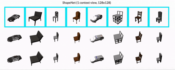 As the Transframer website notes, the AI makes its perspective videos by predicting the target images’ surroundings with “context images” — in short, by correctly guessing what one of the chairs below would look like from different perspectives based on extensive training data that lets it “imagine” an actual object from another angle.