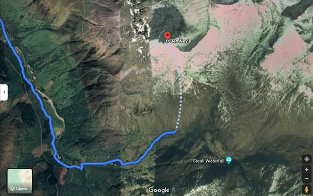 “The problem is that Google Maps directs some visitors to the Upper Falls car park, presumably because it is the closest car park to the summit,” said Nathan Berrie, a conservation officer for the John Muir Trust, to the Press Association. “But this is not the correct route and we often come across groups of inexperienced walkers heading towards Steam Falls or up the south slopes of Ben Nevis believing it is the route to the summit.”