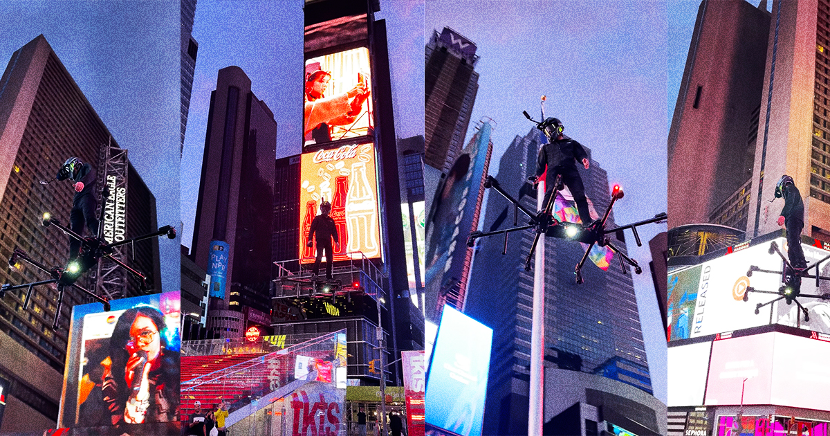 Unless you’re a regular visitor to Times Square — and if so, why? — you may have missed when a mysterious man soared overhead, surfing through the air on a bizarre, hoverboard-like aircraft.