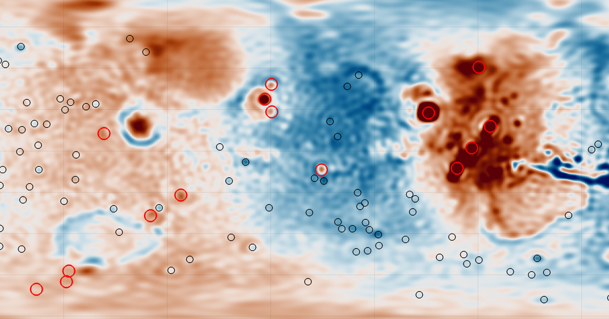 A new analysis of Mars’ gravitational field has revealed hidden structures buried beneath the remains of an ancient ocean.