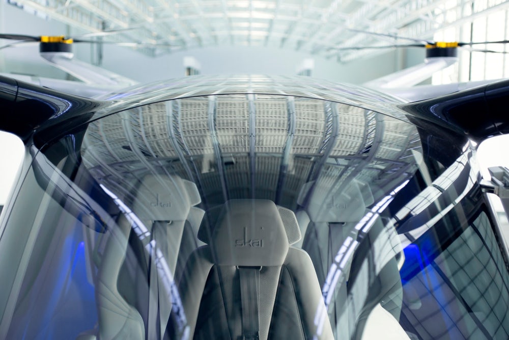 Six rotors enable vertical take-off and landing, enabling the vehicle to essentially fly like a massive drone. An “Airframe Parachute” ensures that the Skai doesn’t simply drop out of the air in the case of a propeller failure.