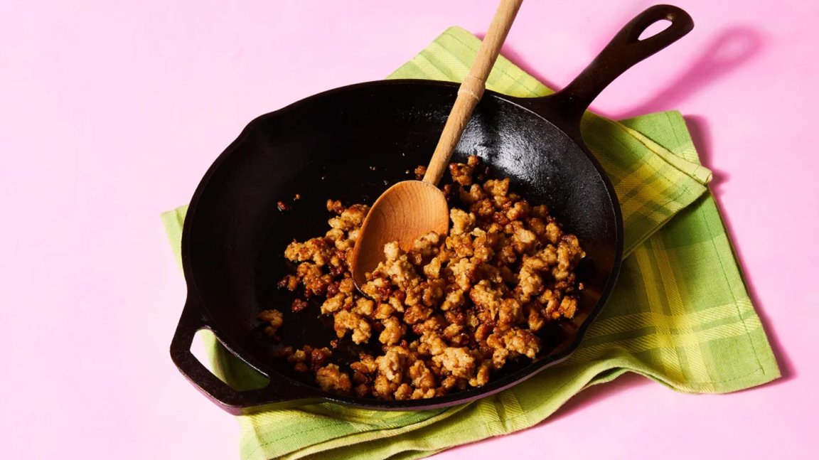 According to a press release, Impossible Pork can be steamed, baked in an oven, charbroiled, grilled on a flat-top or sauteed, much like the real thing.