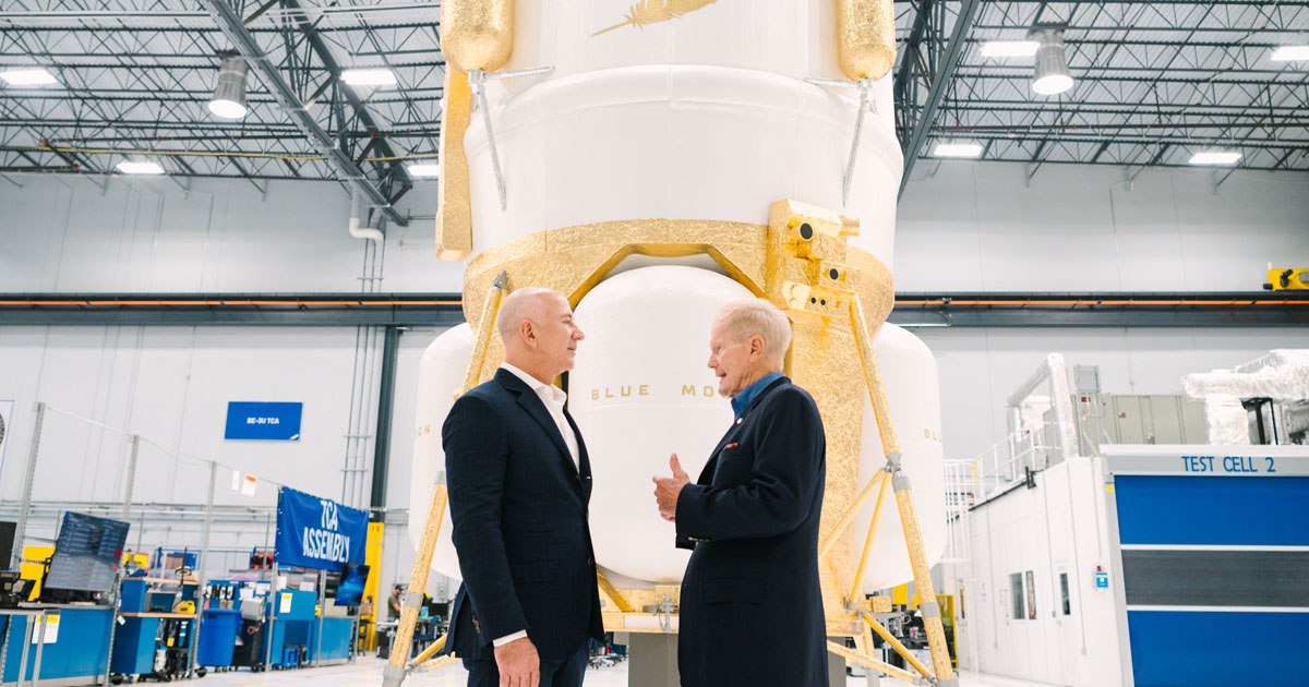 In social media posts last week, NASA administrator Bill Nelson and Blue Origin founder Jeff Bezos showed off its newest mockup, named the Blue Moon Mark 1, a shiny, towering construction that looks remarkably different than the company’s original vision.
