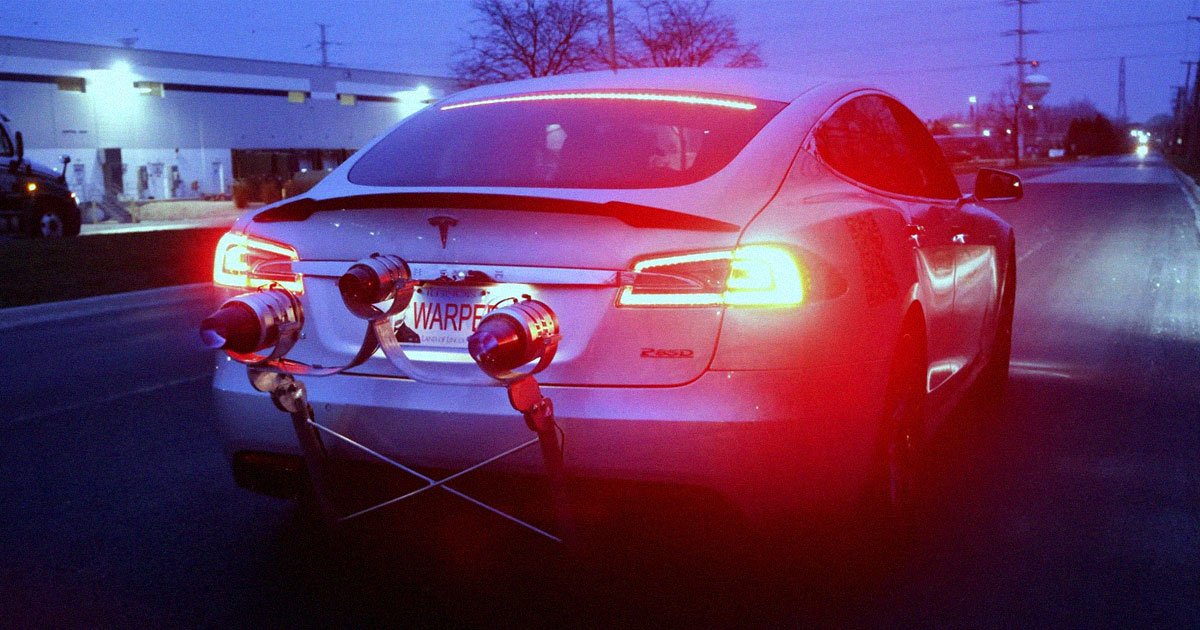 We haven’t heard many updates on that ambition from Musk lately, but YouTuber Matt Mikka, from the channel Warped Perception, took matters into his own hands. The tinkerer attached three jet thrusters to the back of his Tesla Model S in a recent video, allowing him to drive the 4,500 pound vehicle on jet power alone.