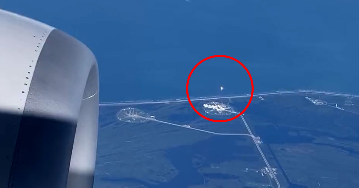Passengers on board a United Airlines commercial jet flying over Florida’s Cape Canaveral were able to spot an amazingly rare sight in the distance: a SpaceX Falcon 9 rocket lifting off from NASA’s Kennedy Space Center, far below.