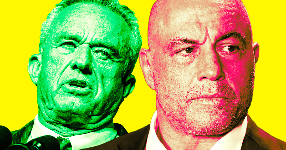Wildly popular podcaster Joe Rogan has just announced his support — but not his endorsement, he was quick to clarify — for presidential hopeful Robert F. Kennedy Jr. We couldn’t name a more potent matchup of two credulous meatheads, one of whom says he has brain worms, while the other at least has them in the figurative sense.