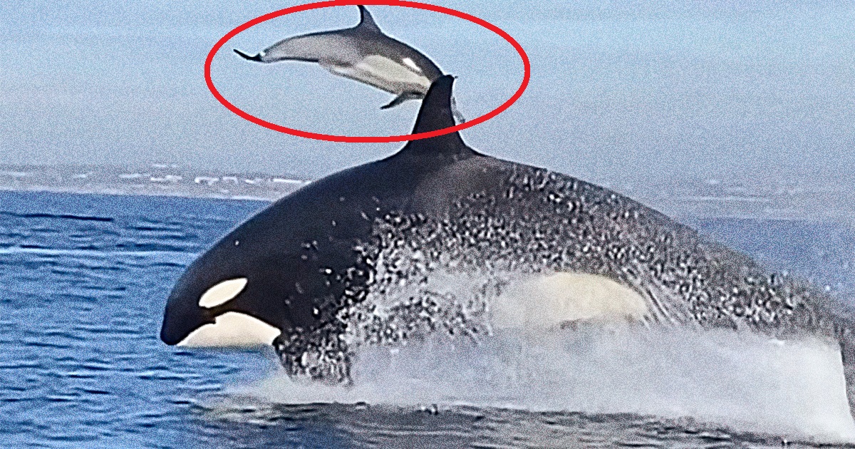 In the same clip, you can see an orca dive into the water, taking a dolphin down into the watery depths. Netzero also noted in the caption that the orca hunting group had two baby orcas, known as calves, who basically tagged along to see and learn from the hunt.