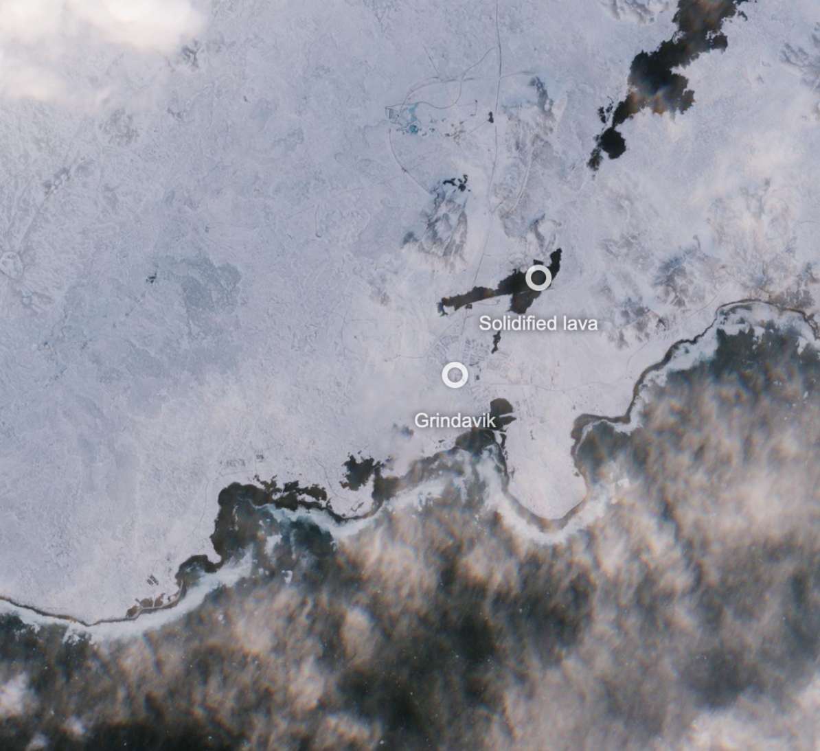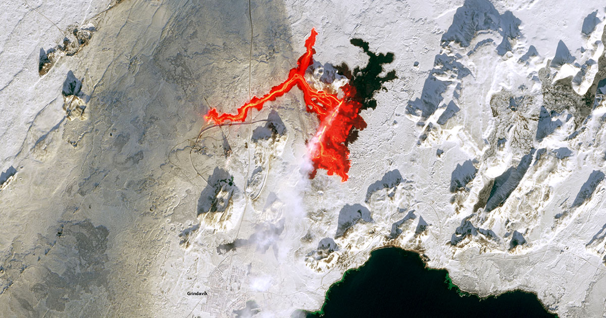 The ongoing eruptions are leaving a visible mark on the surrounding landscape. Previous satellite imagery taken by the SENTINEL-2 before the latest outbreak showed massive regions of solidified lava, dark patches showing up perfectly against the freshly fallen snow.