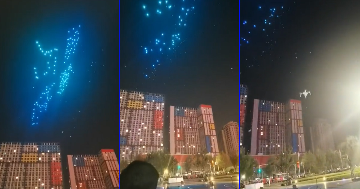 Videos shared on social media show a constellation of drones starting to quickly lose altitude before clattering down on the ground. Onlookers can be seen jumping out of the way to avoid getting struck by the small drones.