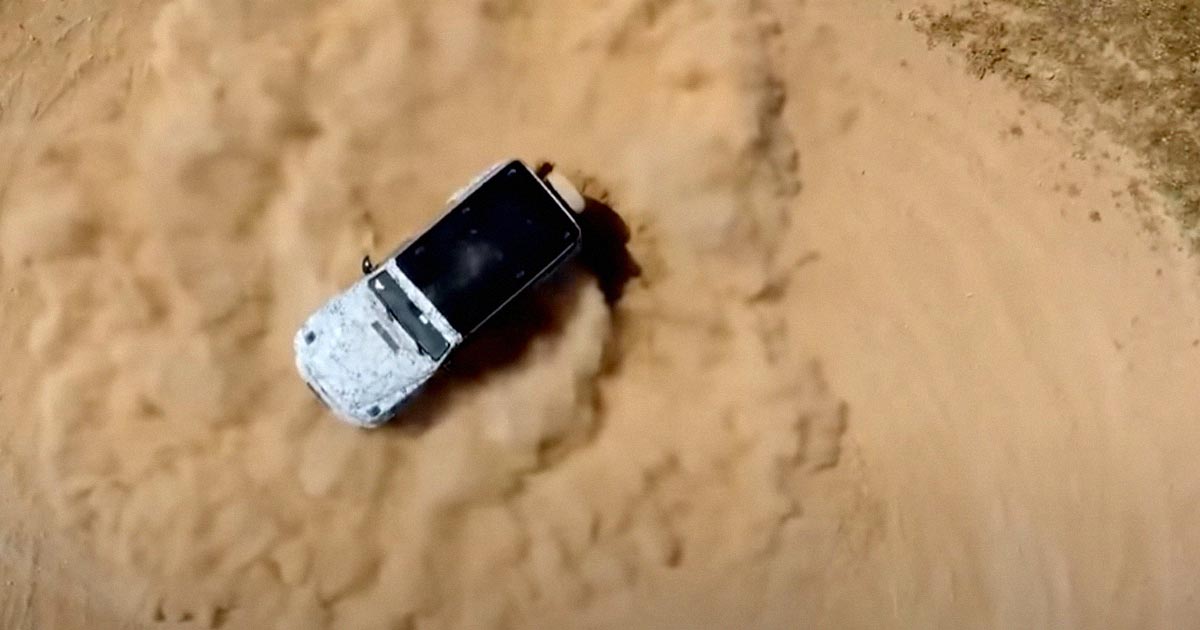 The move, which the brand is calling “G-Turn,” allows the massive vehicle to literally spin around its own axis. A video of the feature shows a truck kick up a vortex of dust as it grinds its four wheels into a dirt track.