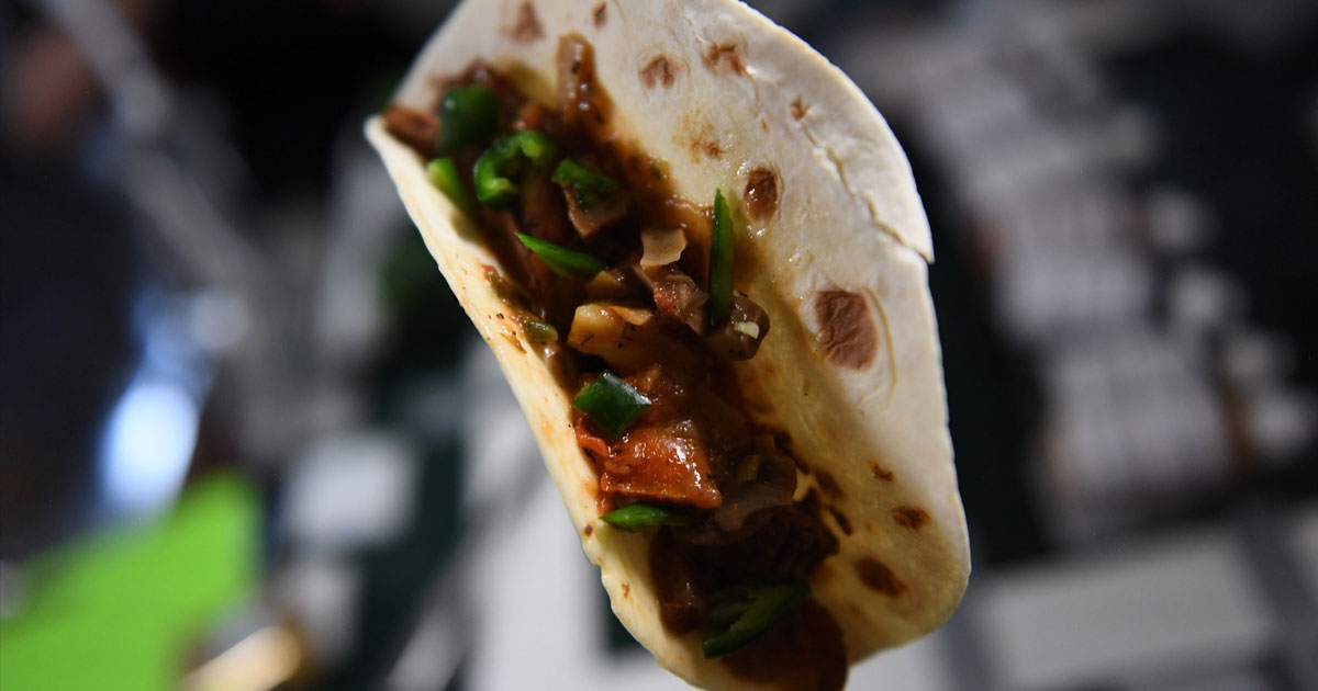 “Friday Feasting!” NASA astronaut Megan McArthur wrote in a Twitter post, noting that the result was “my best space tacos yet: fajita beef, rehydrated tomatoes & artichokes, and HATCH CHILE!”