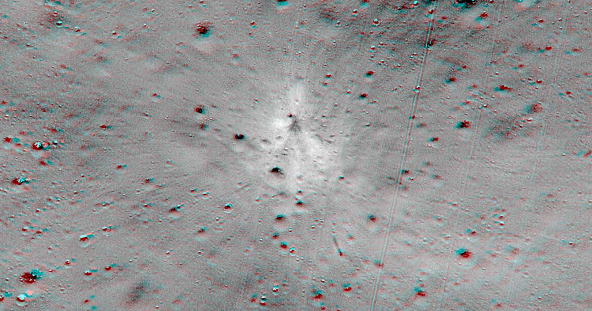 NASA announced Monday that it had finally found the crash site of India’s lost lunar lander, Vikram. Images taken by the Lunar Reconnaissance Orbiter Camera show the lander’s crash site about 600 km from the Moon’s south pole, shown below, including an impact point and field of debris surrounding it.