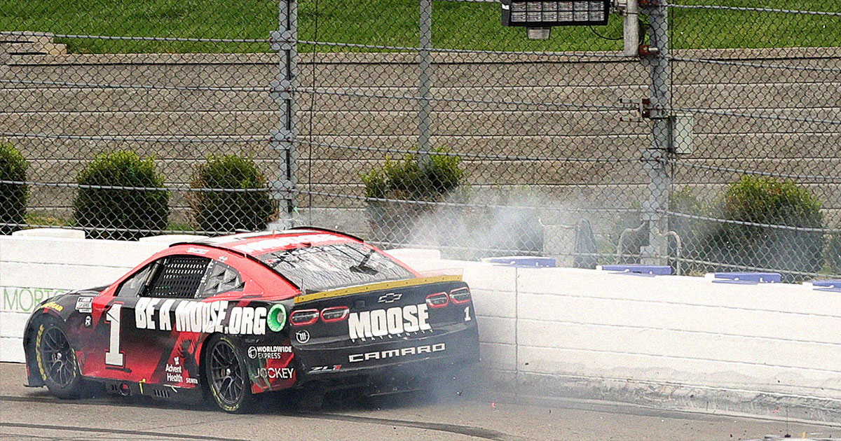 But even digitally, it’s not easy to replicate. Chase Briscoe, a NASCAR driver who finished in 9th place behind Chastain, uploaded a clip of himself trying to pull of a wall ride in the NASCAR Heat video game, only for his car to clip into a random bit of geometry and get sent spinning.