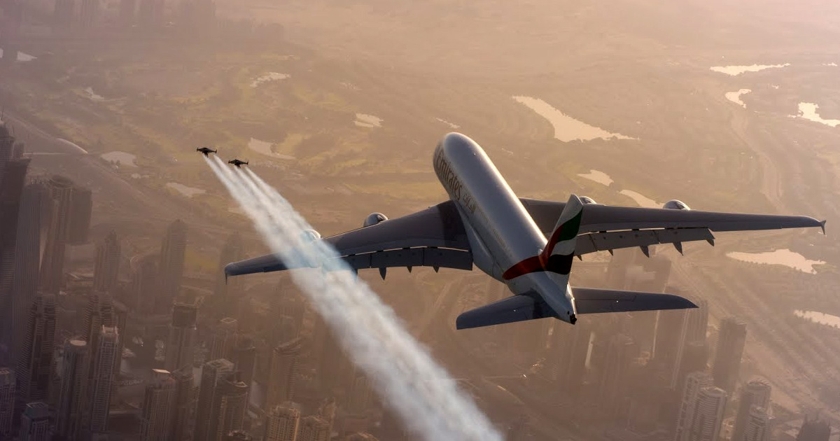 Reffet performed stunts for Jetman Dubai, a company known for its jet-powered “jetwing” flights.