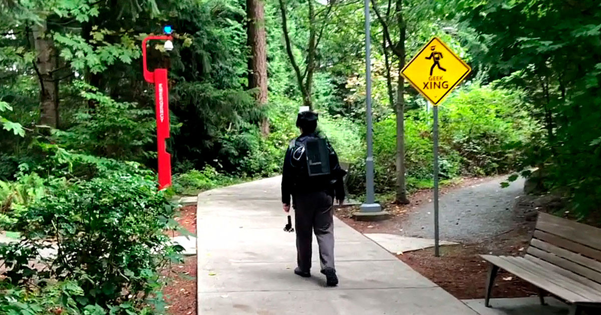 The system uses GPS sensors and cameras to detect moving objects, such as people or cars, along the real-world path, according to a Microsoft blog post, and transforms them into objects in the virtual world.
