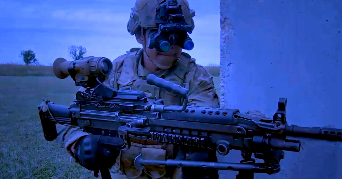 A video, as spotted by The Warzone, shows soldiers firing M4 carbines straight from the hip, without looking into the gun’s sights, in the middle of the night. That’s thanks to a first-person feed of what the gun is pointing at being sent directly to to the night vision goggles.