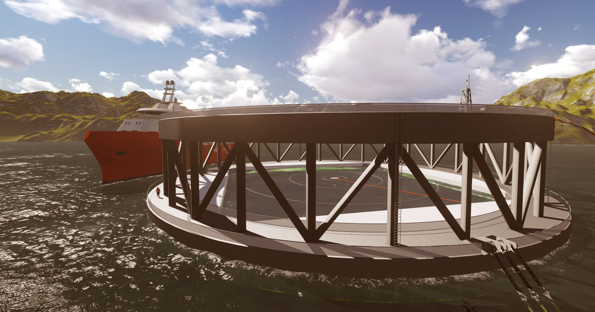 The fish pen is designed to survive the harsh environment of the open ocean while housing up to 600,000 full grown salmon at a time.