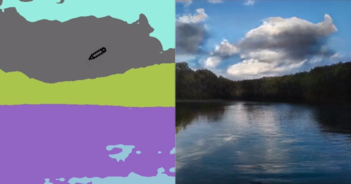 “It’s like a coloring book picture that describes where a tree is, where the sun is, where the sky is,” Bryan Catanzaro, NVIDIA’s VP of applied deep learning research, explained in a blog post in March. “And then the neural network is able to fill in all of the detail and texture, and the reflections, shadows and colors, based on what it has learned about real images.”