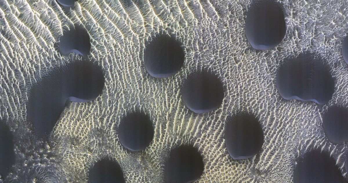 Take a look at these almost perfectly circular sand dunes dotting the Martian landscape that were spotted by NASA’s Mars Reconnaissance Orbiter (MRO).