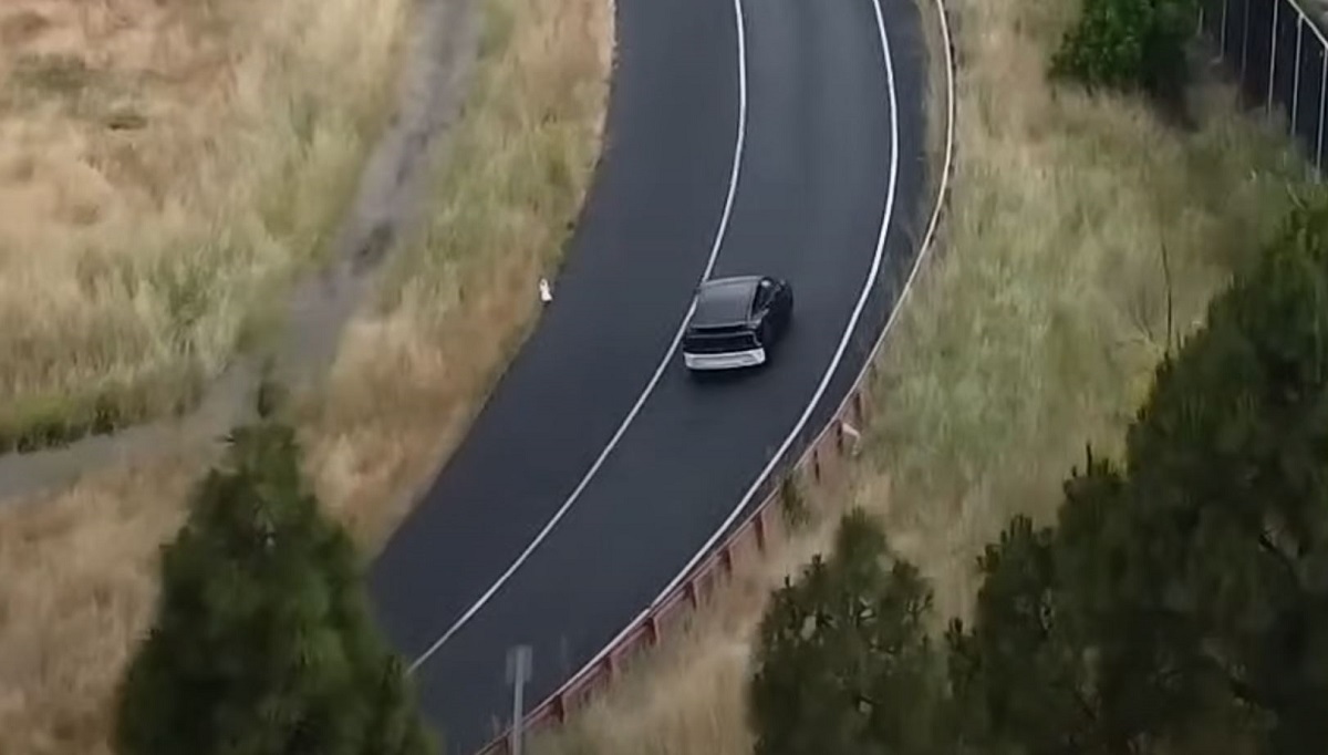 A YouTuber flew a drone over Tesla’s Fremont test track and saw what may be its new cheap model racing around it.